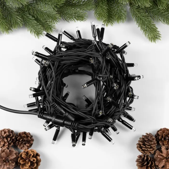 Гирлянда «Нить» 10 м, IP65, УМС, тёмная каучуковая нить, 100 LED, свечение тёплое белое, мерцание, 220 В — Характеристики