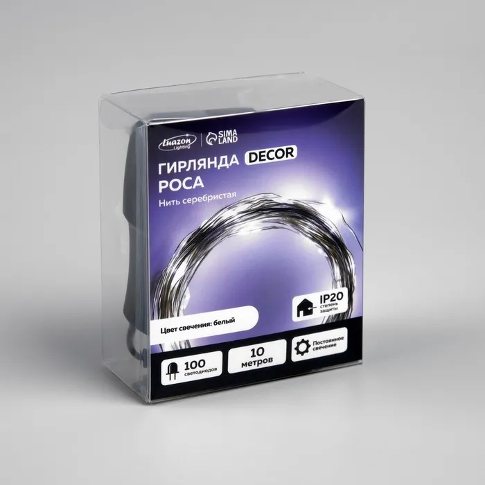 Гирлянда «Нить» 10 м роса, IP20, серебристая нить, 100 LED, свечение белое, 12 В — Характеристики