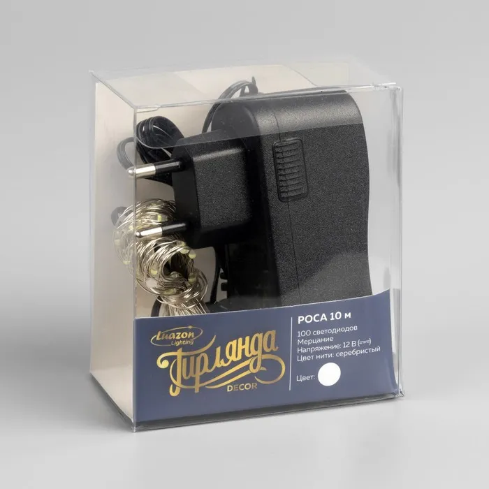 Гирлянда «Нить» 10 м роса, IP20, серебристая нить, 100 LED, свечение белое, мерцание белым, 12 В — Характеристики