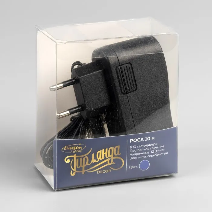 Гирлянда «Нить» 10 м роса, IP20, серебристая нить, 100 LED, свечение синее, 12 В — Характеристики