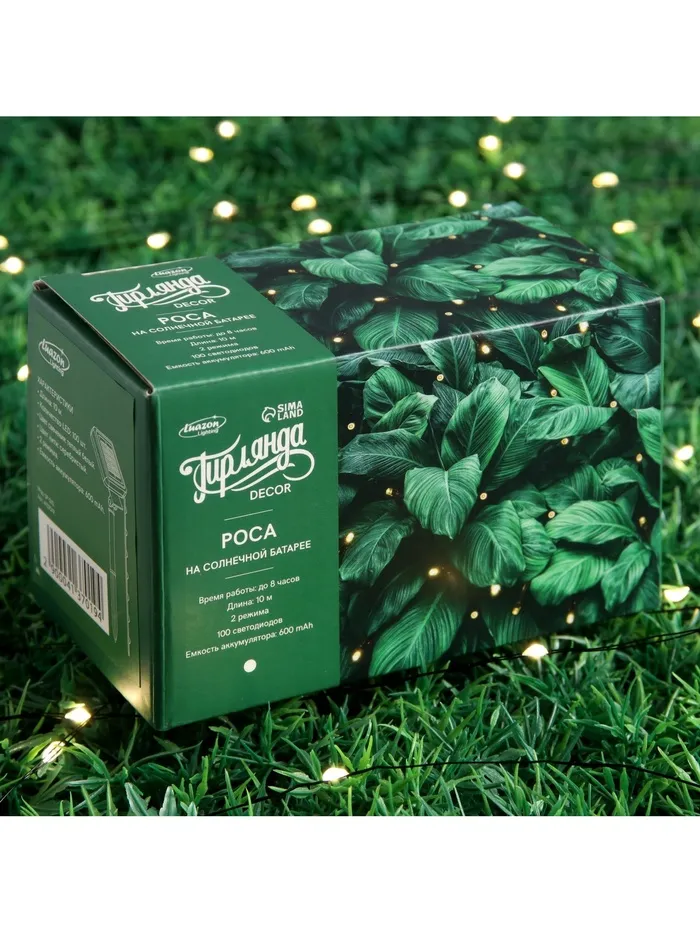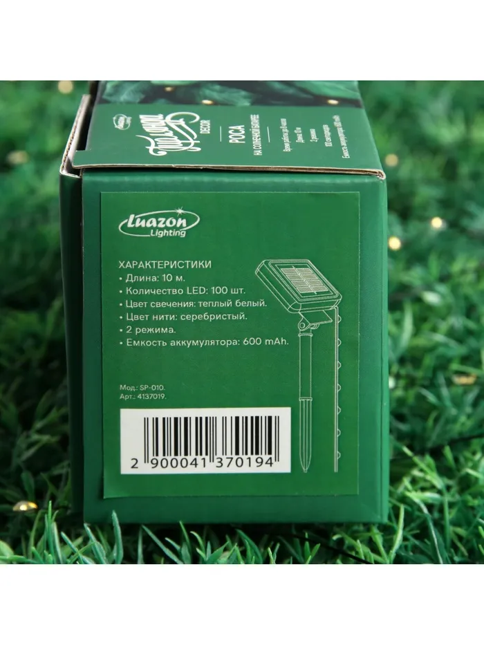 Гирлянда «Нить» 10 м роса, IP44, серебристая нить, 100 LED, свечение тёплое белое, 2 режима, солнечная батарея — Характеристики