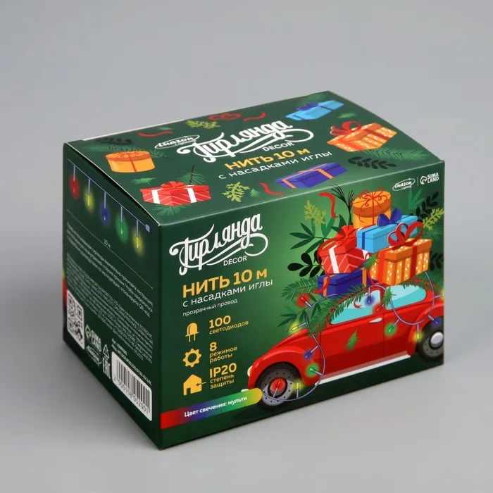 Гирлянда «Нить» 10 м с насадками «Игла», IP20, прозрачная нить, 100 LED, свечение мульти, 8 режимов, 220 В — Характеристики