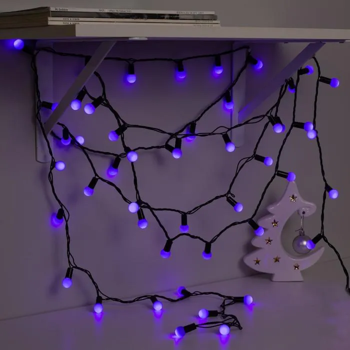 Гирлянда «Нить» 10 м с насадками «Шарики 1.5 см», IP44, тёмная нить, 100 LED, свечение фиолетовое, 8 режимов, 220 В — Характеристики