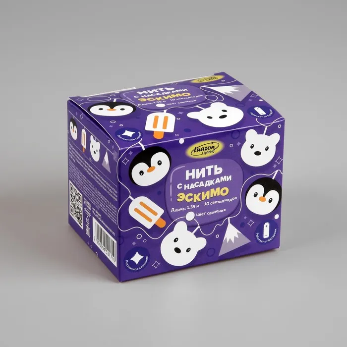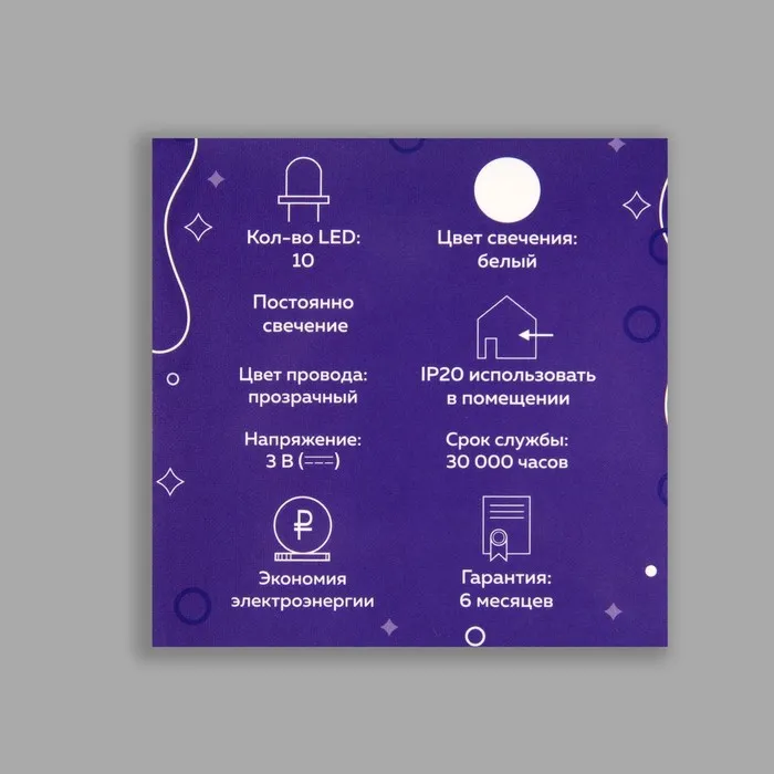 Гирлянда «Нить» 1.35 м с насадками «Эскимо», IP20, прозрачная нить, 10 LED, батарейки AAх2 (нет в комплекте), свечение белое — Характеристики