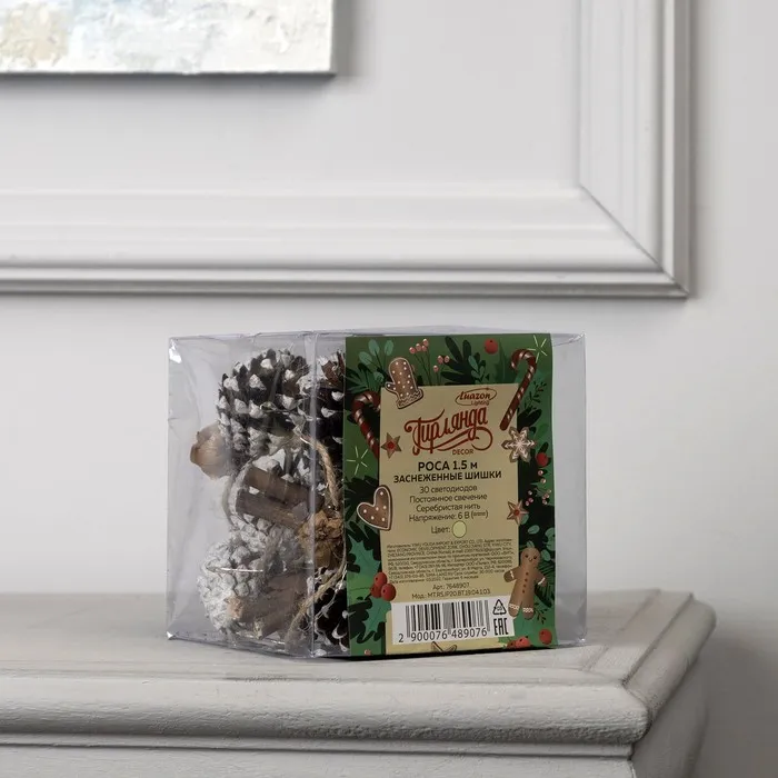Гирлянда «Нить» 1.5 м роса с насадками «Заснеженные шишки», IP20, серебристая нить, 30 LED, батарейки CR2032х2 (в комплекте), свечение тёплое белое — Характеристики