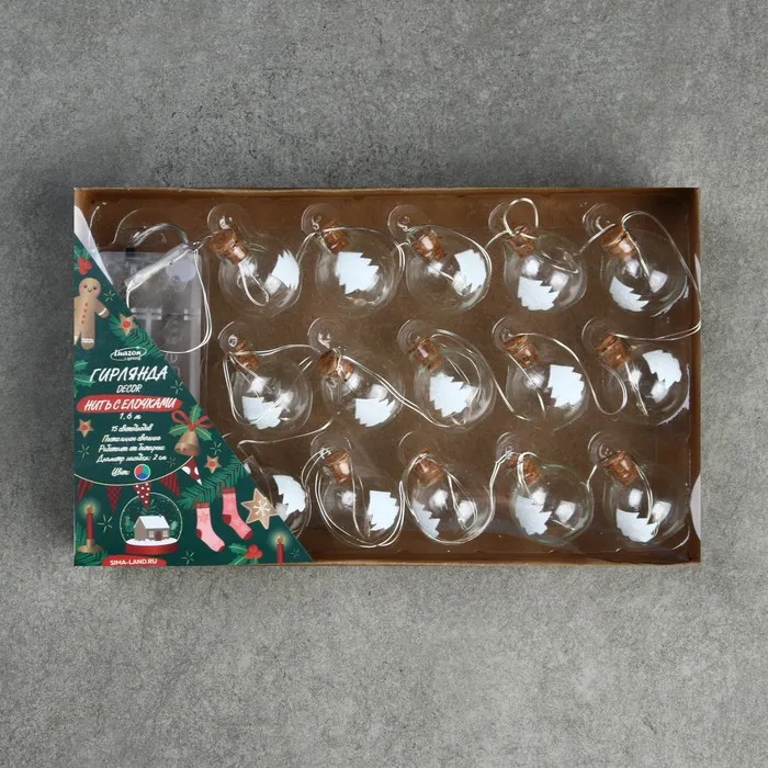 Гирлянда «Нить» 1.6 м с насадками «Шарики с ёлочкой», IP20, серебристая нить, 15 LED, батарейки ААх2 (нет в комплекте), свечение мульти — Характеристики
