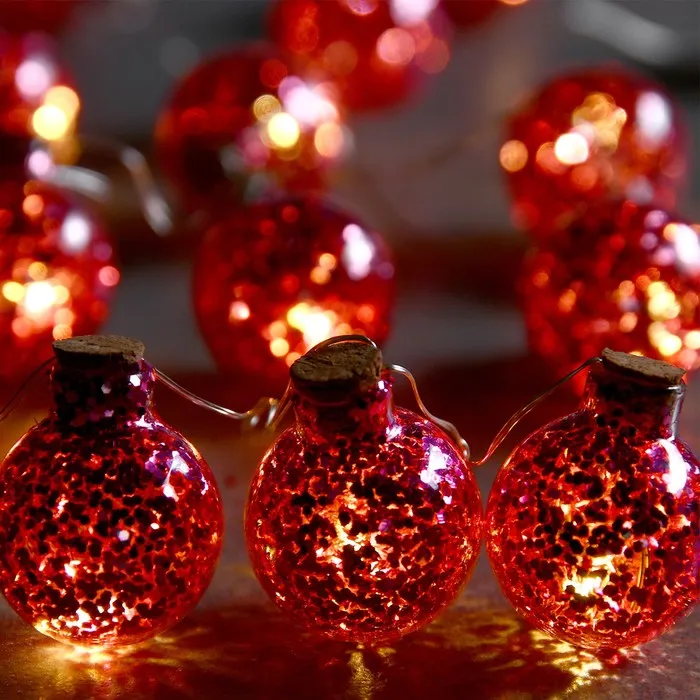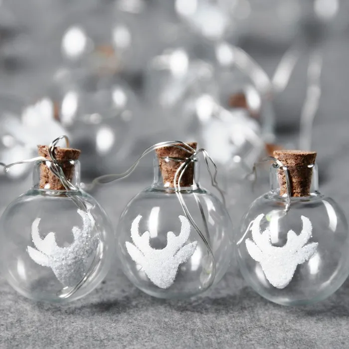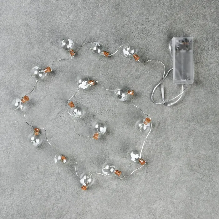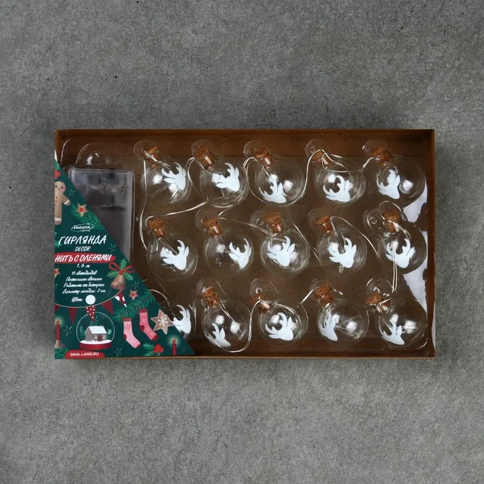 Гирлянда «Нить» 1.6 м с насадками «Шарики с оленем», IP20, серебристая нить, 15 LED, батарейки ААх2 (нет в комплекте), свечение белое — Характеристики