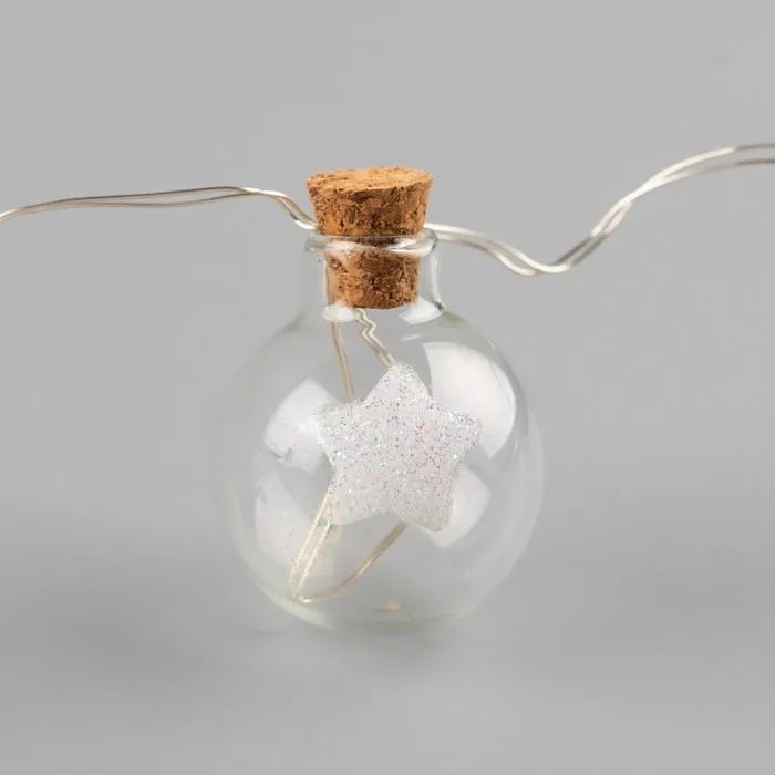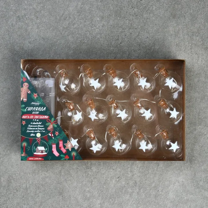 Гирлянда «Нить» 1.6 м с насадками «Шарики со звездой», IP20, серебристая нить, 15 LED, батарейки ААх2 (нет в комплекте), свечение тёплое белое — Характеристики