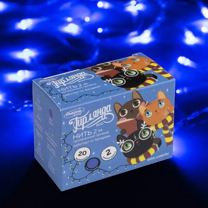 Гирлянда «Нить» 2 м, IP20, прозрачная нить, 20 LED, 2 режима, батарейки AAх3 (нет в комплекте), свечение синее — Характеристики