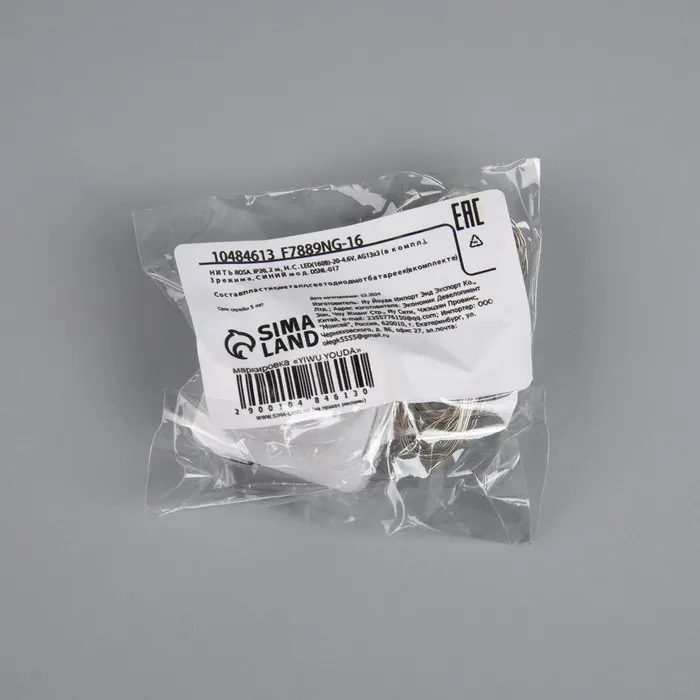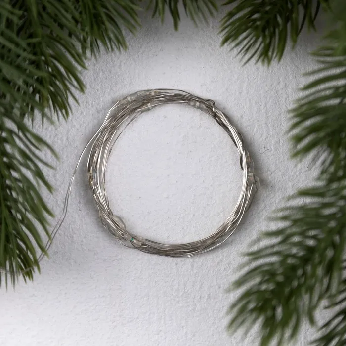 Гирлянда «Нить» 2 м роса. IP20, нить серебристая, 20 LED, 4.6 В, AG13x3 (в комплекте), 3 режима, свечение синее — Характеристики