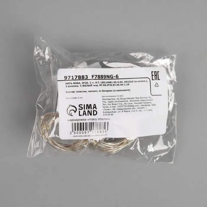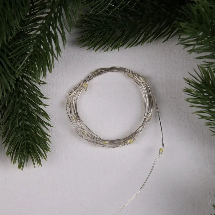 Гирлянда «Нить» 2 м роса, IP20, серебристая нить, 20 LED, 3 режима, батарейки AG13х3 (в комплекте), свечение тёплое белое — Характеристики