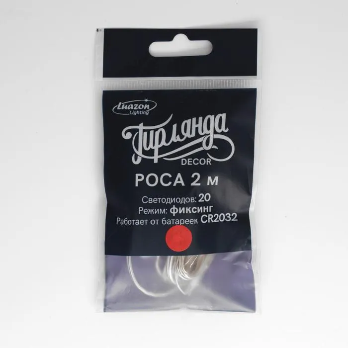 Гирлянда «Нить» 2 м роса, IP20, серебристая нить, 20 LED, батарейки CR2032х2 (в комплекте), свечение красное — Характеристики