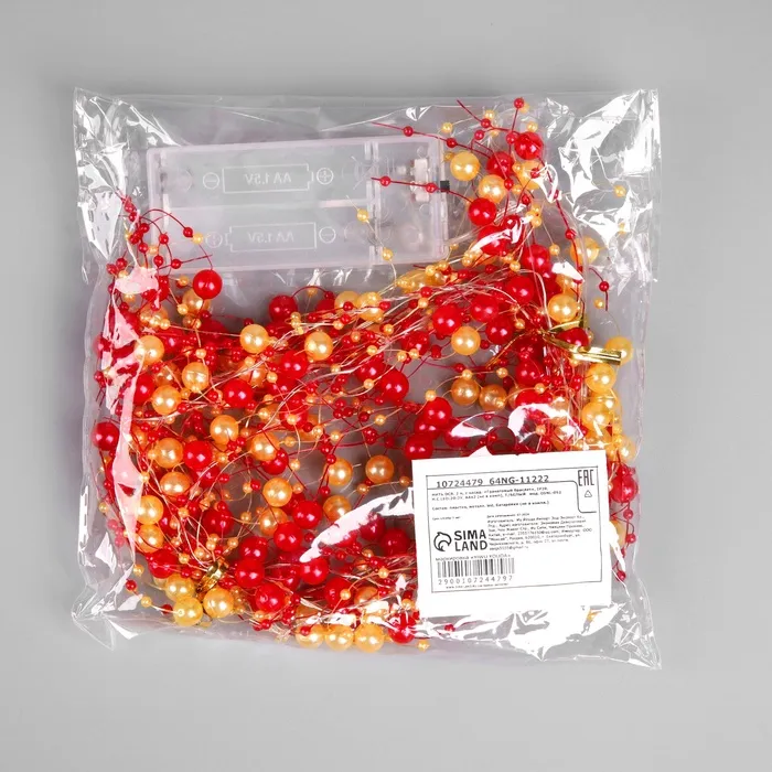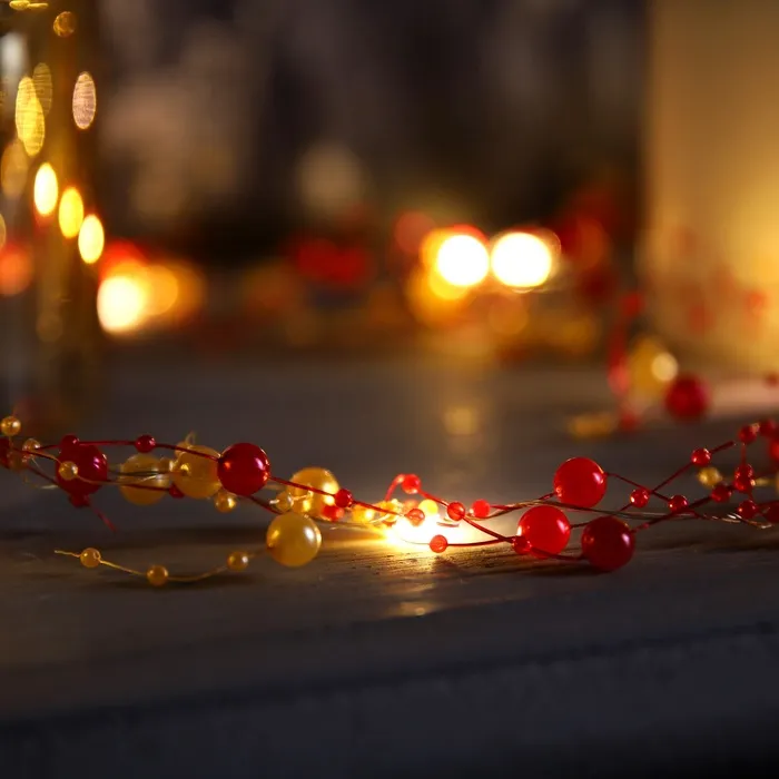 Гирлянда «Нить» 2 м роса с насадками «Гранатовый браслет», IP20, нить серебристая, 20 LED, батарейки AAx2 (не в комплекте), свечение тёплое белое — Характеристики