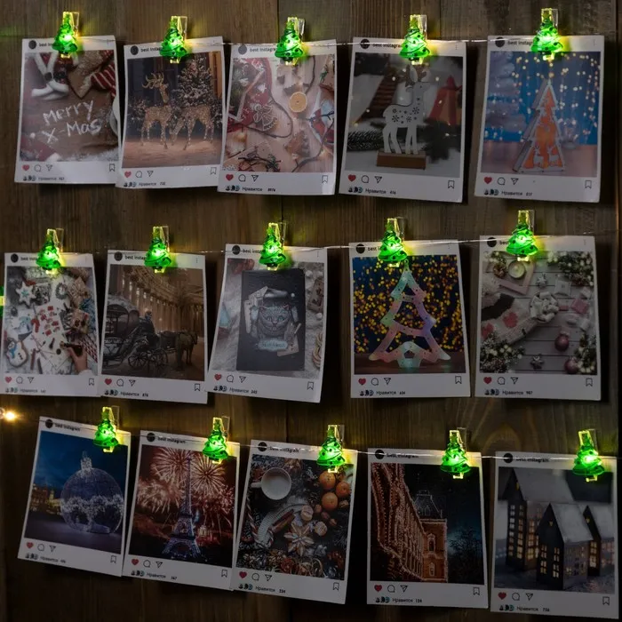 Гирлянда «Нить» 2 м роса с насадками «Прищепки-ёлки», IP20, серебристая нить, 20 LED, батарейки ААх2 (нет в комплекте), свечение тёплое белое — Характеристики