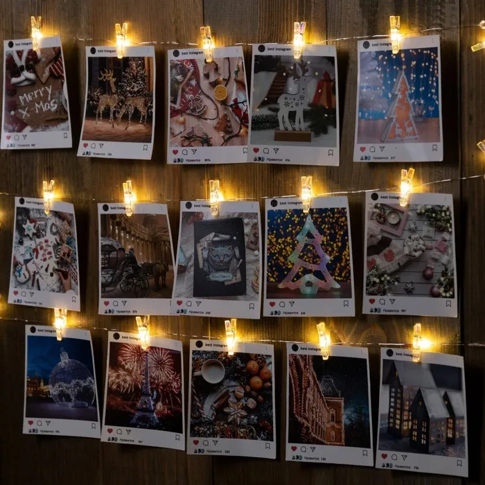 Гирлянда «Нить» 2 м роса с насадками «Прищепки», IP20, серебристая нить, 20 LED, свечение тёплое белое, ААх2 — Характеристики