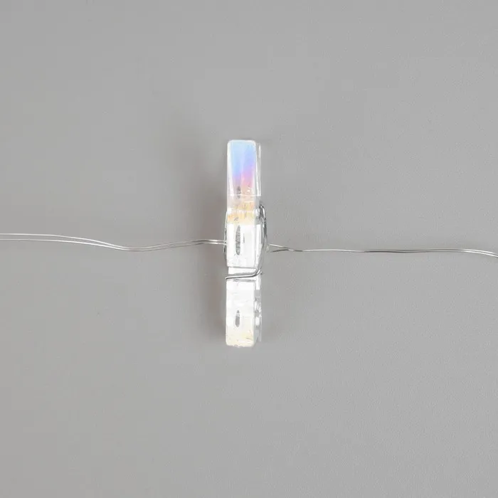 Гирлянда «Нить» 2 м роса с насадками «Прищепки», IP20, серебристая нить, 20 LED, свечение тёплое белое, ААх2
