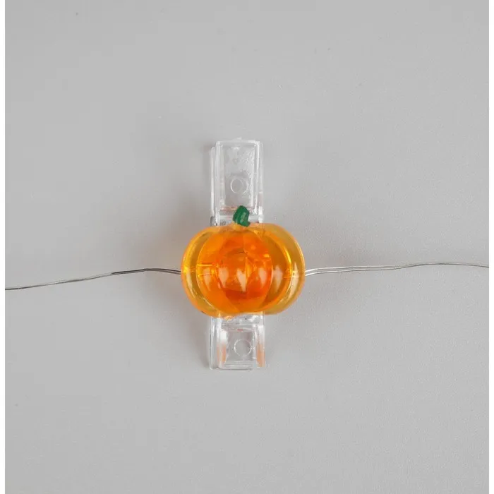 Гирлянда «Нить» 2 м роса с насадками «Прищепки-тыквы», IP20, серебристая нить, 20 LED, батарейки ААх2 (нет в копмплекте), свечение тёплое белое