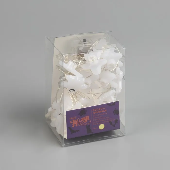 Гирлянда «Нить» 2 м роса с насадками «Призрак», IP20, серебристая нить, 20 LED, свечение тёплое белое, 2 режима, ААх2 — Характеристики