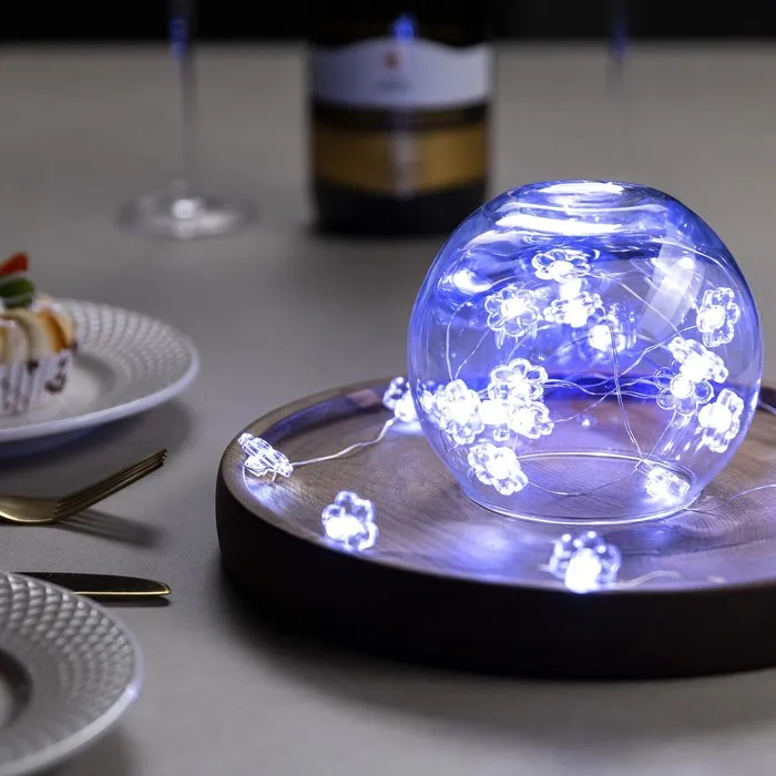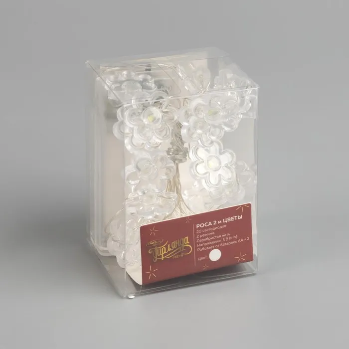 Гирлянда «Нить» 2 м роса с насадками «Цветок», IP20, серебристая нить, 20 LED, 2 режима, батарейки ААх2 (нет в комплекте), свечение белое — Характеристики