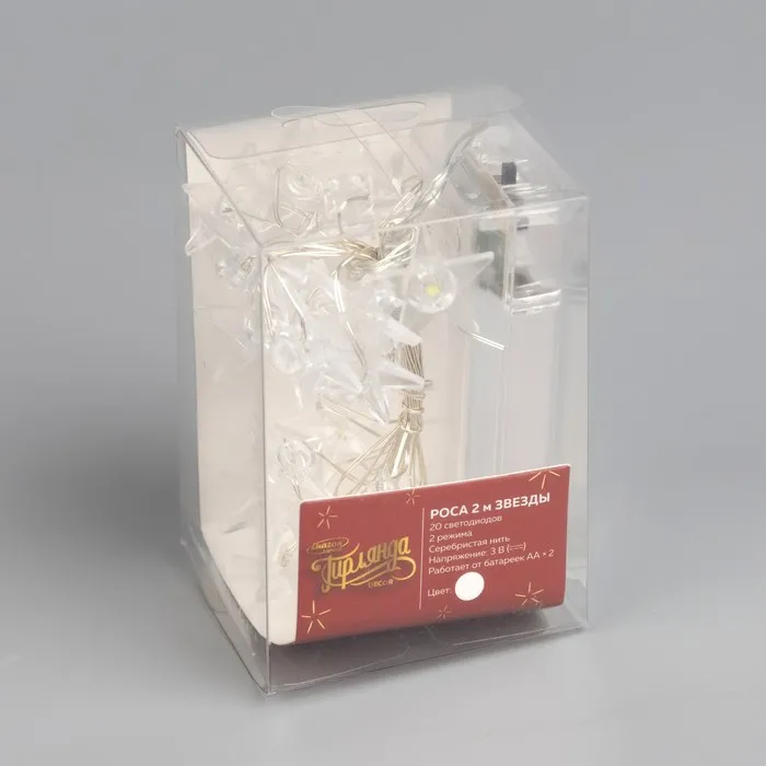 Гирлянда «Нить» 2 м роса с насадками «Звезда», IP20, серебристая нить, 20 LED, свечение белое, 2 режима, ААх2 — Характеристики