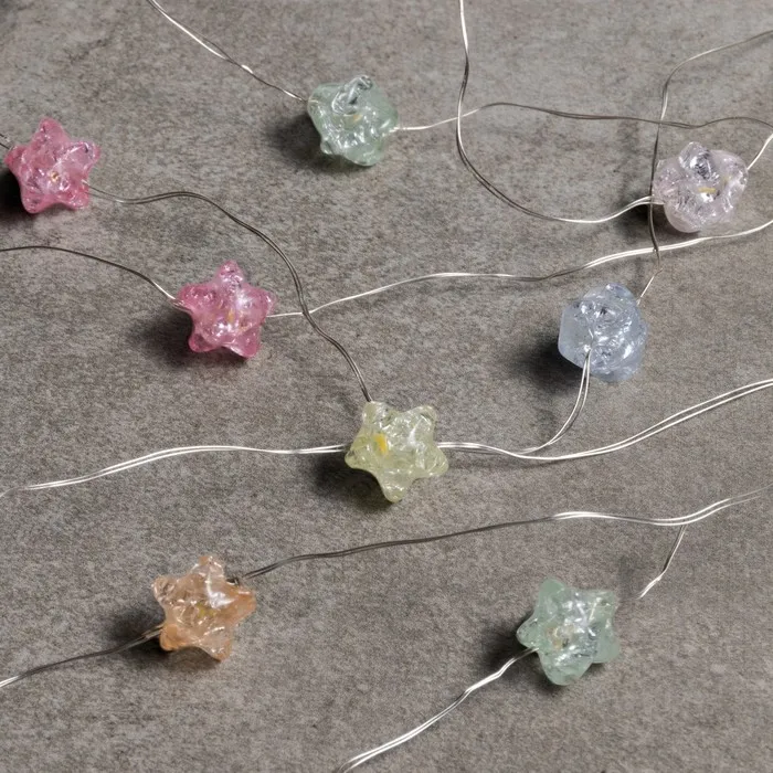 Гирлянда «Нить» 2 м роса с насадками «Звездочки», IP20, нить серебристая, 20 LED, 4.6 В, батарейки AG13x3 (в комплекте), 3 режима, свечение тёплое белое — Характеристики