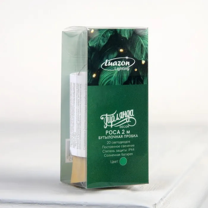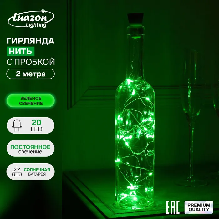 Гирлянда «Нить» 2 м роса с пробкой, IP44, серебристая нить, 20 LED, свечение зелёное, фиксинг, солнечная батарея — Характеристики