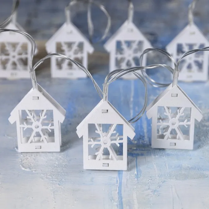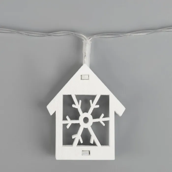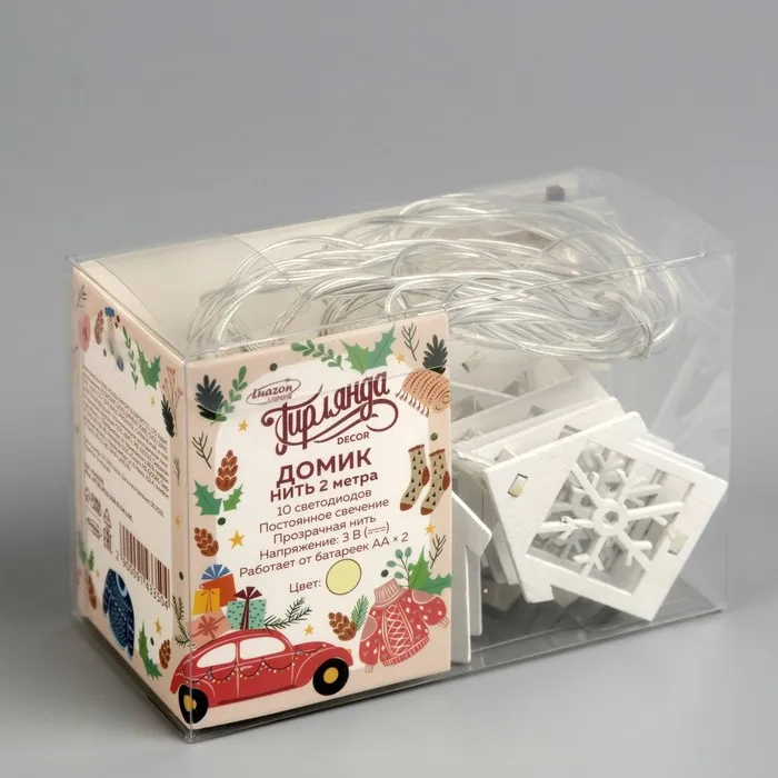 Гирлянда «Нить» 2 м с насадками «Домик», IP20, прозрачная нить, 10 LED, свечение тёплое белое, AAх2 — Характеристики