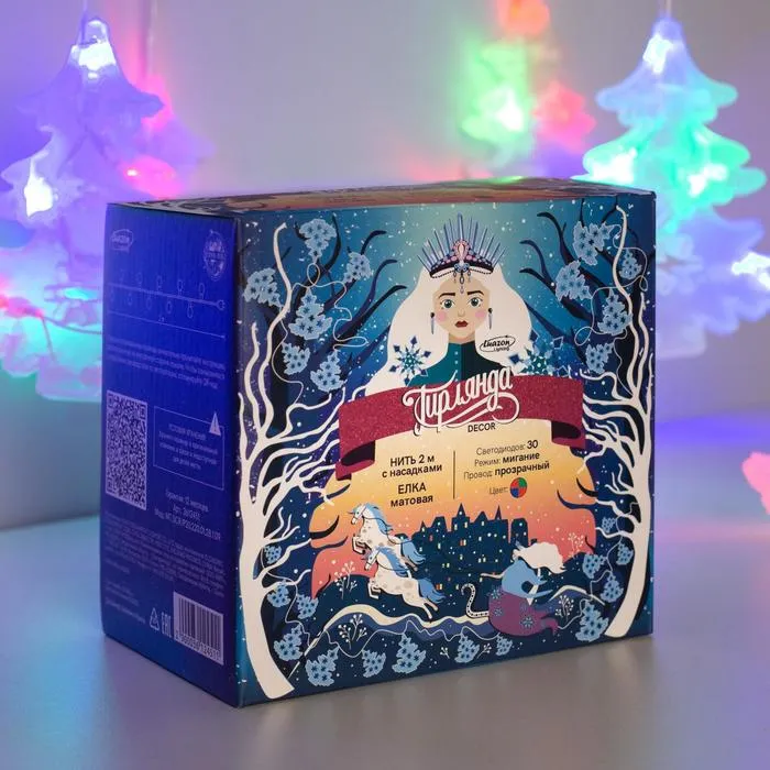 Гирлянда «Нить» 2 м с насадками «Ёлка матовая», IP20, прозрачная нить, 30 LED, свечение мульти (RG/RB), мигание, 220 В — Характеристики