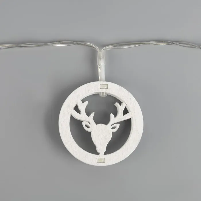 Гирлянда «Нить» 2 м с насадками «Олень», IP20, прозрачная нить, 10 LED, батарейки AAх2 (нет в комплекте), свечение тёплое белое