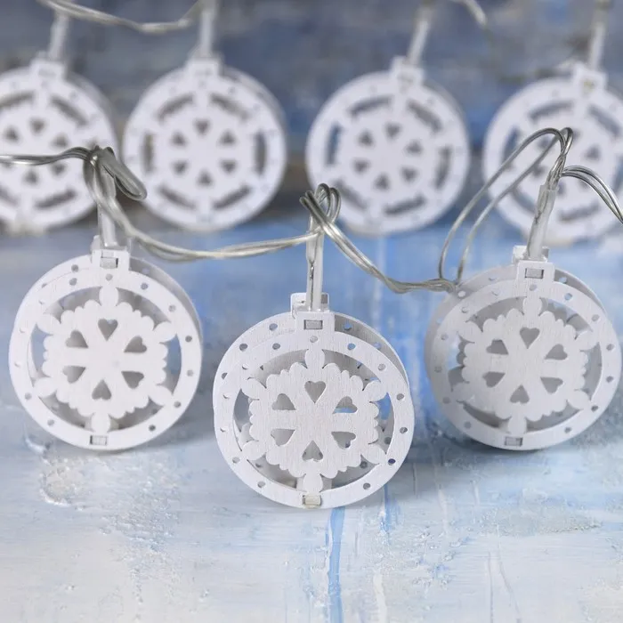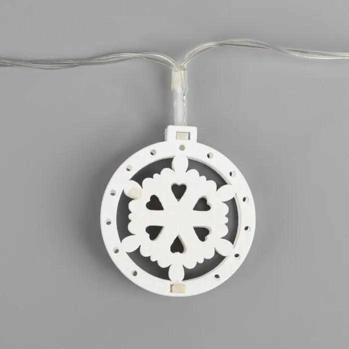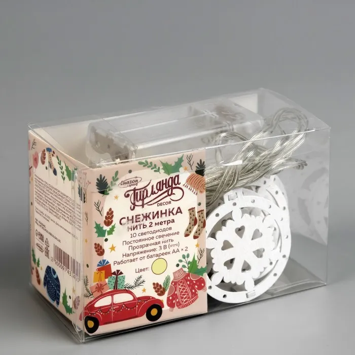 Гирлянда «Нить» 2 м с насадками «Снежинка», IP20, прозрачная нить, 10 LED, батарейки AAх2 (нет в комплекте), свечение тёплое белое — Характеристики