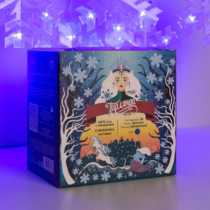 Гирлянда «Нить» 2 м с насадками «Снежинка матовая», IP20, прозрачная нить, 36 LED, свечение синее, 220 В — Характеристики