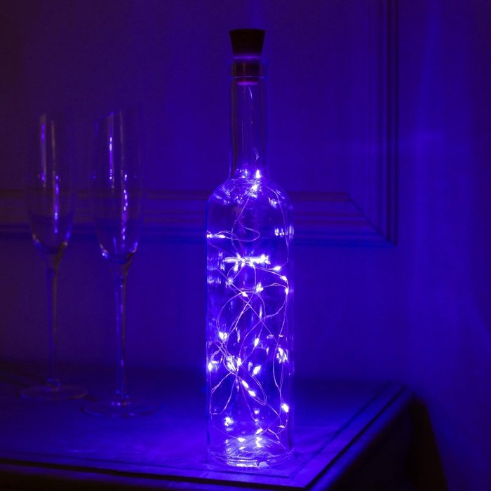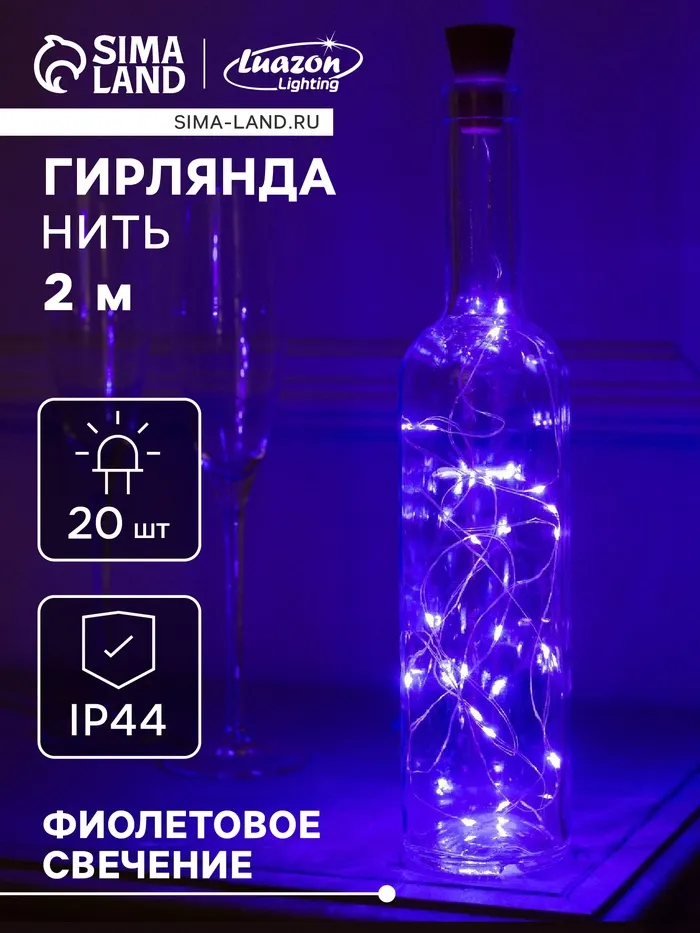 Гирлянда «Нить», 2 м, уличная, роса с пробкой, IP44, серебристая нить, 20 LED, фиксинг, солнечная батарея, свечение фиолетовое — Характеристики