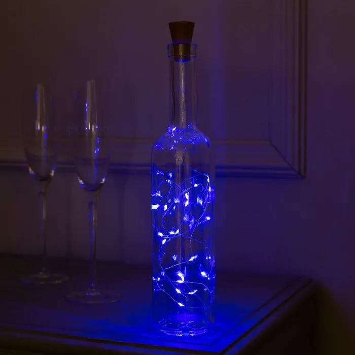 Гирлянда «Нить», 2 м, уличная, роса с пробкой, IP44, серебристая нить, 20 LED, фиксинг, солнечная батарея, свечение синее — Характеристики