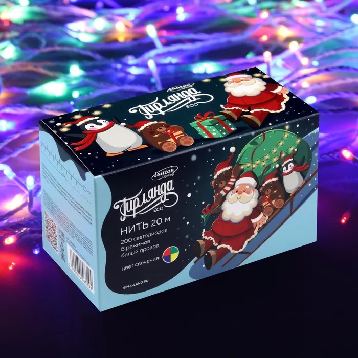 Гирлянда «Нить» 20 м, IP20, белая нить, 200 LED, свечение мульти, 8 режимов, 220 В — Характеристики
