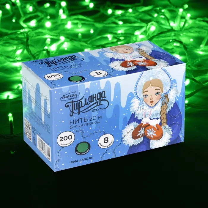 Гирлянда «Нить» 20 м, IP20, белая нить, 200 LED, свечение зелёное, 8 режимов, 220 В — Характеристики