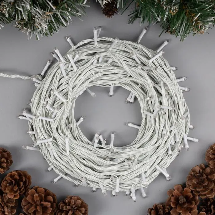 Светодиодная гирлянда, состоящая из одного провода, на котором светодиоды расположены один за другим. Эта гирлянда универсальна и может использоваться для обрамления объектов, декорирования в различных направлениях или создания простого и элегантного освещения. Серия гирлянд ECO предлагает экономичное и надежное решение для декоративного освещения. Их ключевая особенность - доступная цена и простота в использовании, что делает гирлянды идеальными для самых разных задач и стилей оформления. ПВХ . LED 5 мм. IP 20 - устройство защищено от твердых объектов больше 12,5 мм и не защищено от проникновения воды. Цвета свечения: мульти, белый, тёплый белый, синий, фиолетовый, желтый, зеленый, красный. Цвет нити: черный, белый, прозрачный