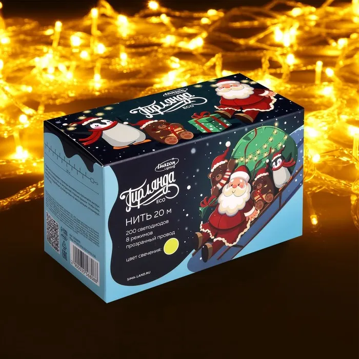 Гирлянда «Нить» 20 м, IP20, прозрачная нить, 200 LED, 8 режимов, 220 В, свечение жёлтое — Характеристики