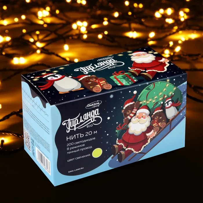 Гирлянда «Нить» 20 м, IP20, тёмная нить, 200 LED, свечение жёлтое, 8 режимов, 220 В — Характеристики