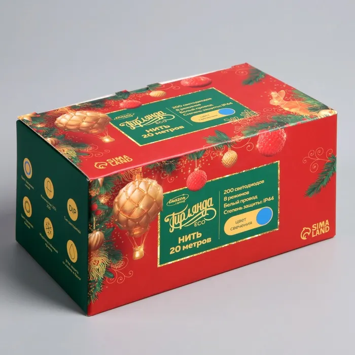 Гирлянда «Нить» 20 м, IP44, белая нить, 200 LED, свечение синее, 8 режимов, 220 В — Характеристики