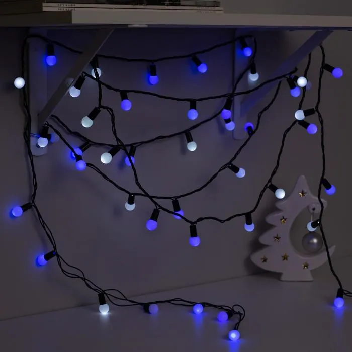 Гирлянда «Нить» 20 м с насадками «Шарики 1.5 см», IP44, тёмная нить, 200 LED, свечение бело-синее, мигание, 220 В