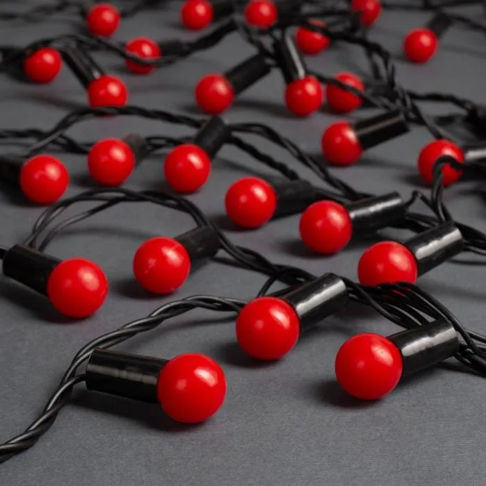 Гирлянда «Нить» 20 м с насадками «Шарики 1.5 см», IP44, тёмная нить, 200 LED, свечение красное, 8 режимов, 220 В — Характеристики