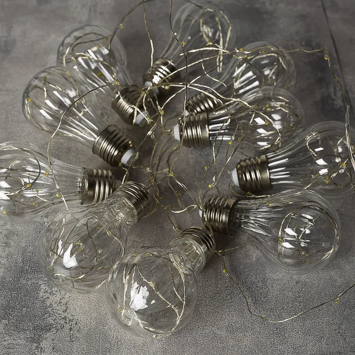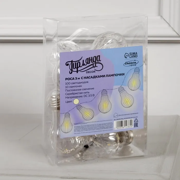Гирлянда «Нить» 3 м роса с насадками «Лампочки объёмные», IP20, серебристая нить, 100 LED, свечение тёплое белое, 3.5 В — Характеристики