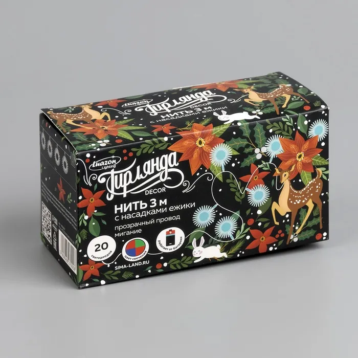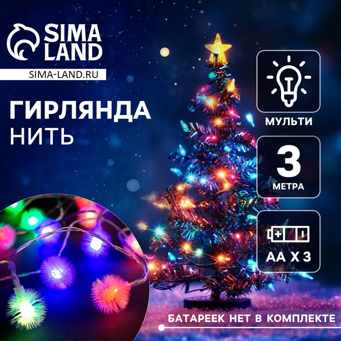 Гирлянда «Нить» 3 м с насадками «Ёжики», IP20, прозрачная нить, 20 LED, батарейки AAх3 (нет в комплекте), свечение мульти — Характеристики