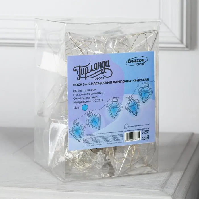 Гирлянда «Нить» 3 м с насадками «Лампочки кристалл», IP20, прозрачная нить, 80 LED, свечение синее, 8 режимов, 220 В — Характеристики