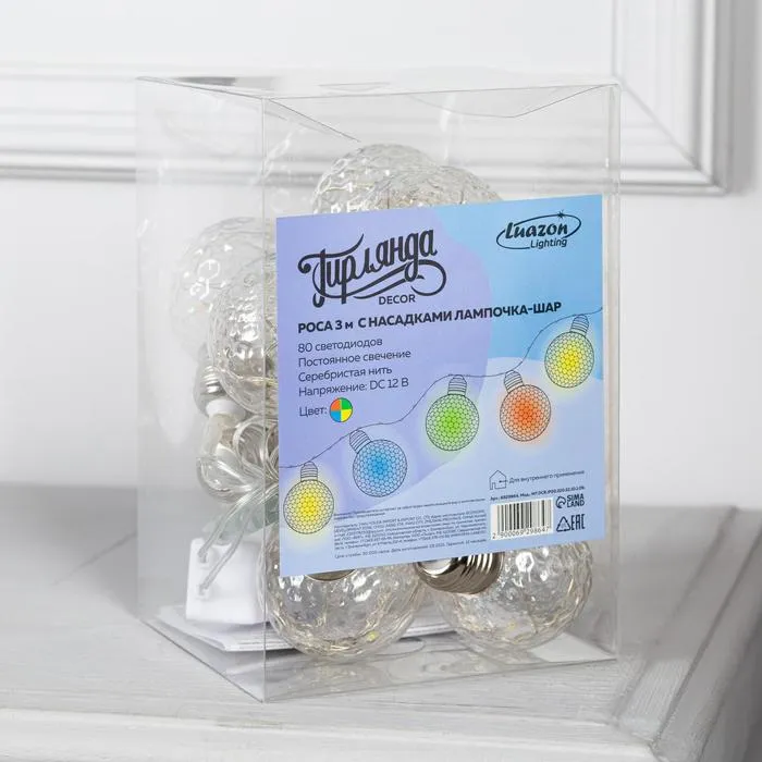 Гирлянда «Нить» 3 м с насадками «Лампочки шары», IP20, прозрачная нить, 80 LED, свечение мульти, 8 режимов, 220 В — Характеристики