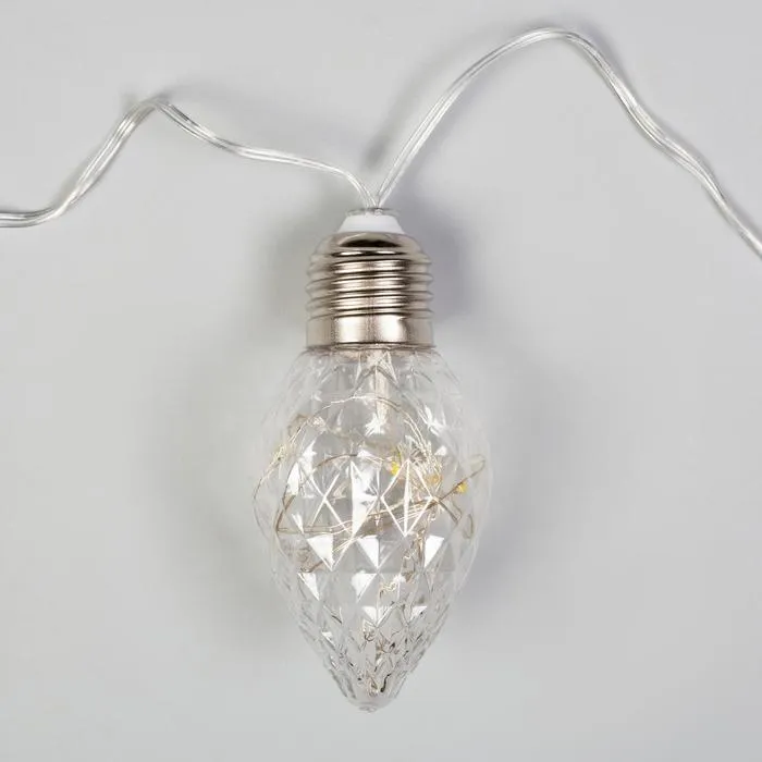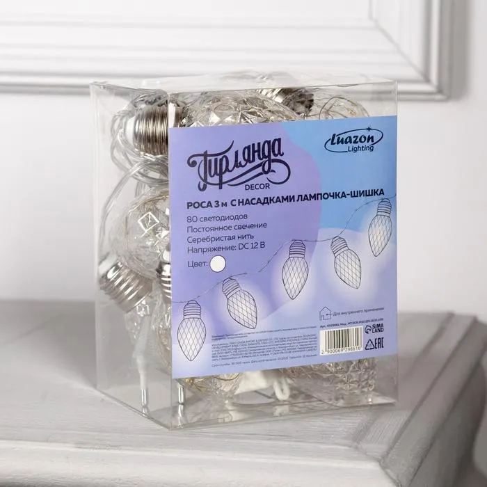 Гирлянда «Нить» 3 м с насадками «Лампочки шишки», IP20, прозрачная нить, 80 LED, свечение белое, 8 режимов, 220 В — Характеристики