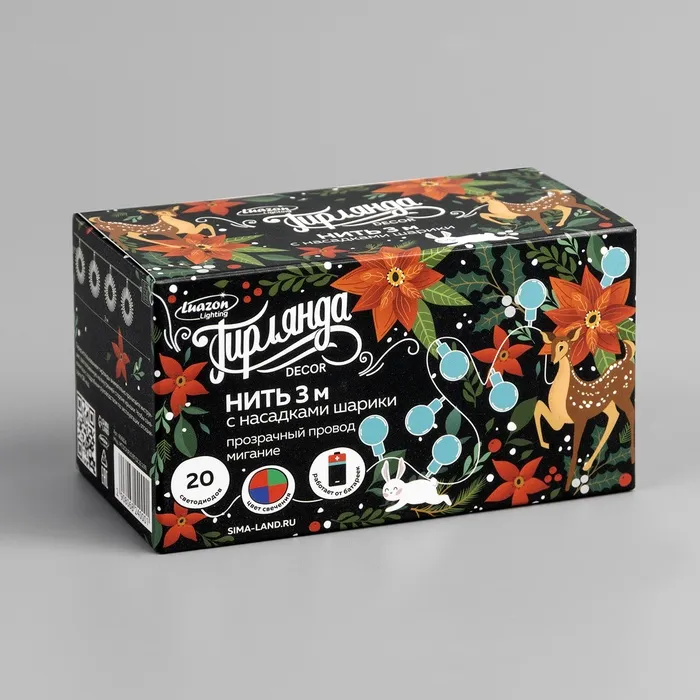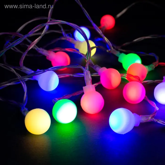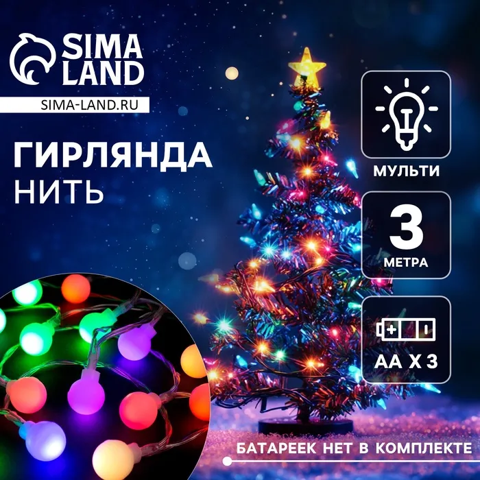 Гирлянда «Нить» 3 м с насадками «Шарики», IP20, прозрачная нить, 20 LED, батарейки AAх3 (нет в комплекте), свечение мульти — Характеристики