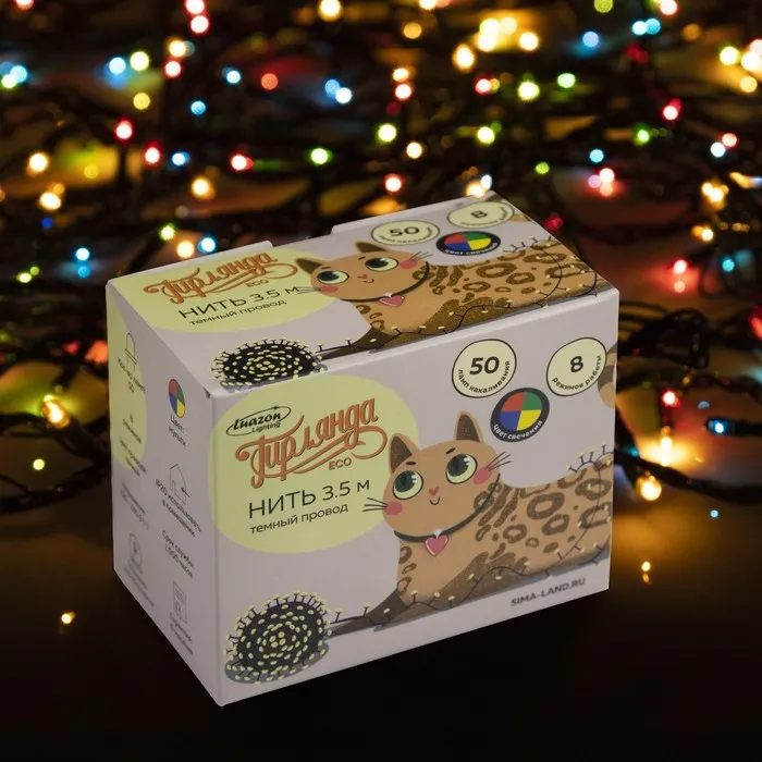Гирлянда «Нить» 3.5 м, IP20, тёмная нить, 50 ламп, свечение мульти, 8 режимов, 220 В — Характеристики