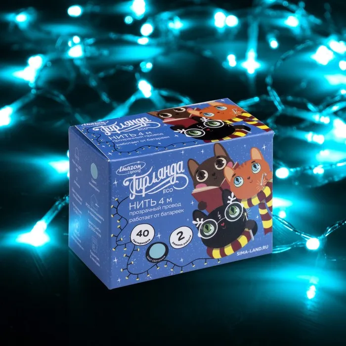 Гирлянда «Нить» 4 м, IP20, прозрачная нить, 40 LED, 2 режима, батарейки AAх3 (нет в комплекте), свечение аквамарин — Характеристики