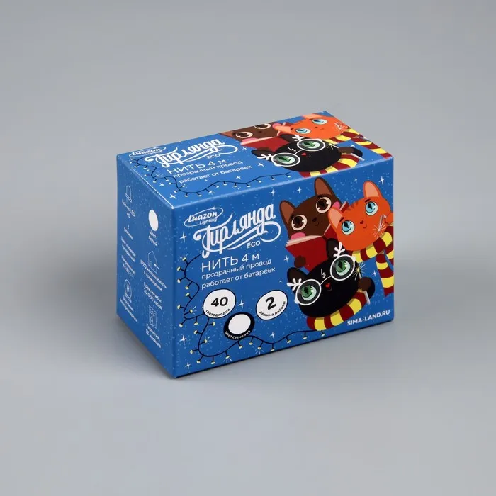 Гирлянда «Нить» 4 м, IP20, прозрачная нить, 40 LED, 2 режима, батарейки AAх3 (нет в комплекте), свечение белое — Характеристики